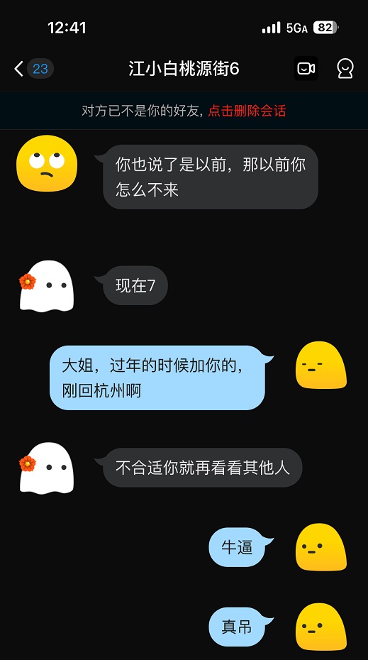 杭州江小白非常牛逼 2026-03-07 0 prot 浙江专区 年后刚回杭州,在家憋了一个春节,蠢蠢欲动,本来想出击江小白,2月11号刚加的,联系后说涨价了,问了一句年前不是6张吗,对面直接开怼。 我就想不明白了,一个小鸡哪些大哥舔的这么吊,能在杭州干这么多年?还是有人就喜欢这种调调?